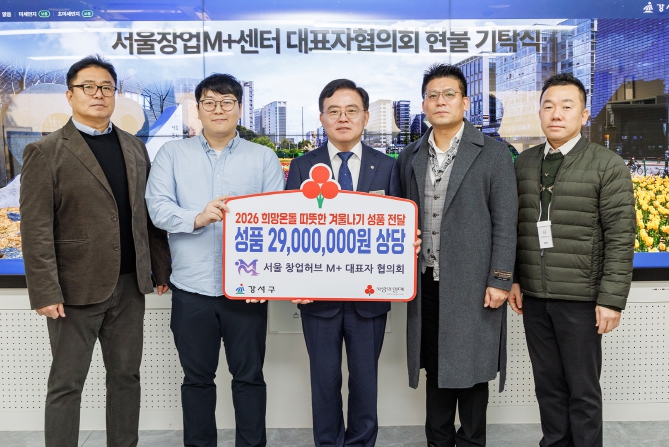 [무한뉴스=정승훈 기자] 서울 강서구는 8일 서울창업허브 엠플러스(M+) 대표자협의회로부터 2천9백만 원 상당의 이웃돕기 성품을 전달받았다.