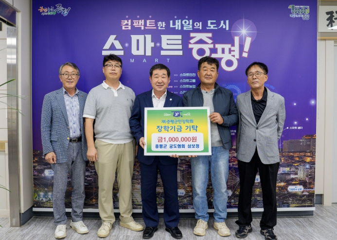 [무한뉴스=정민정 기자] 충북 증평군 궁도협회 ‘삼보정’(회장 최준경)은 10일 군청을 찾아 지역의 우수 인재 양성을 위해 써달라며 (재)증평군민장학회에 장학금 100만원을 기탁했다.
