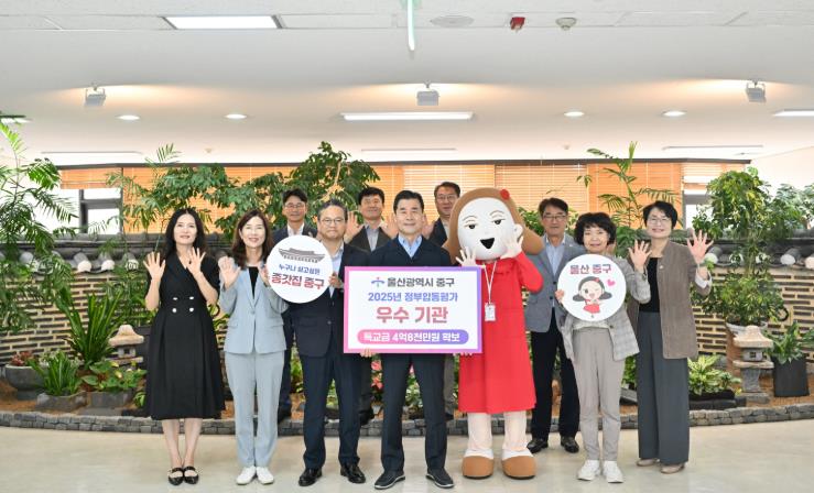 [무한뉴스=최진수 기자] 울산 중구가 울산시 주관 ‘2025년(2024년 실적) 정부합동평가 구·군 평가’에서 종합 2위를 달성해 우수기관으로 선정됐다.