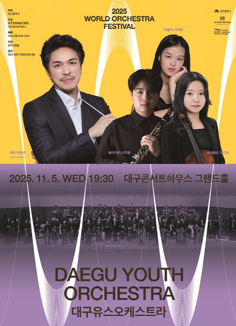 [무한뉴스=최진수 기자] (재)대구문화예술진흥원 대구콘서트하우스는 오는 11월 5일 저녁 7시 30분, 그랜드홀에서 ‘2025 월드오케스트라페스티벌’의 일환으로 대구유스오케스트라의 공연을 개최한다.