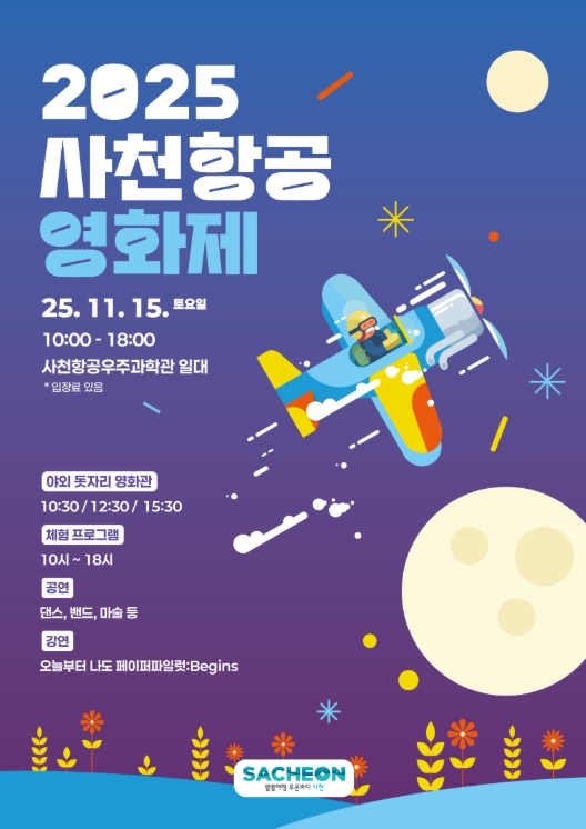 [무한뉴스=최진수 기자] 사천시는 오는 11월 15일, 사천항공우주과학관 주차장 일원에서 ‘2025 사천항공영화제’를 개최한다.