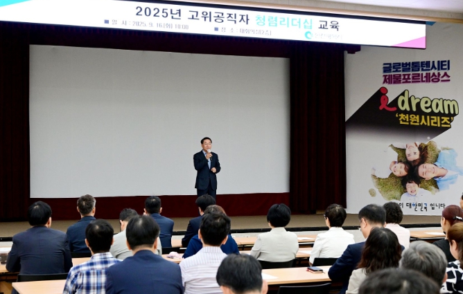 [무한뉴스=정승훈 기자] 인천광역시는 9월 16일 인천시청 대회의실에서 유정복 시장을 비롯한 3급 이상 고위직과 4급 승진자를 대상으로 ‘2025년 고위공직자 청렴 리더십 교육’을 실시했다고 밝혔다.