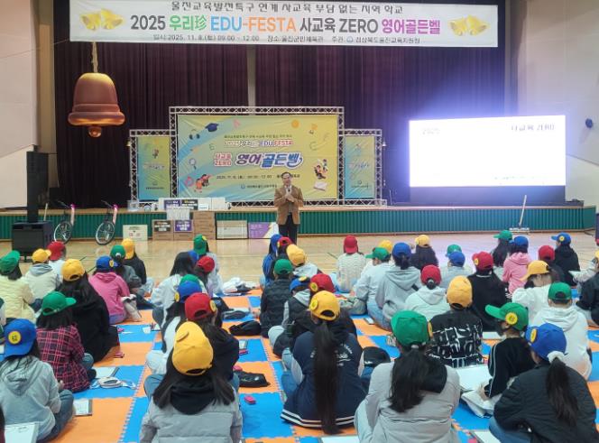 [무한뉴스=최진수 기자] 울진교육지원청은 11월 8일 오전 9시, 울진군민체육관에서 울진 관내 초등학생 5~6학년 100여명을 대상으로 '2025 우리珍 에듀 페스타 ‘사교육 ZERO 영어골든벨’'을 개최했다.