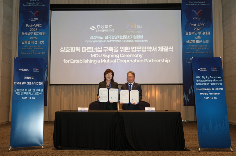 [무한뉴스=최진수 기자] 경상북도는 28일 경주 황룡원에서 한국경영혁신중소기업협회와 해외기업과 외국인 투자유치 협력을 대폭 강화하기 위한 상호협력 파트너십 업무협약(MOU)을 체결했다.