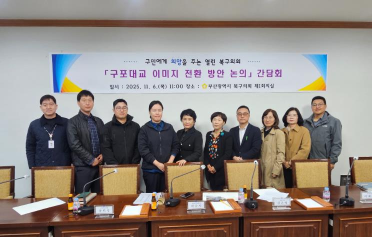[무한뉴스=최진수 기자] 부산광역시 북구의회는 11월 6일 북구의회 제1회의실에서 구포대교의 부정적 이미지를 개선하고 투신 사고를 예방하기 위해 '구포대교 이미지 전환 방안 논의' 간담회를 개최했다고 밝혔다.