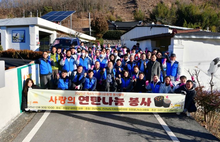 [무한뉴스=정민정 기자] 장성군이 훈훈한 나눔 소식을 전했다. 군에 따르면 30일 오전 (사)전남지체장애인협회 회원 등 100여 명이 연탄 1200장을 장성읍·황룡면 소재 저소득 가구 5곳에 전달했다.