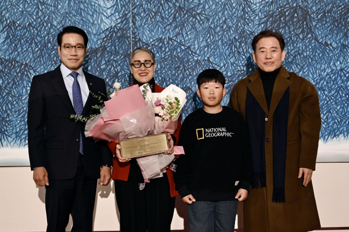 특히 축하 꽃다발은 ‘제1회 김병종 미술상 어린이상’ 수상자 중 한 명인 함지율 어린이(여수 소라초등학교 4학년)가 전달해, 세대와 지역이 함께하는 축하의 장면을 연출했다.