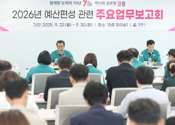 [무한뉴스=정민정 기자] 강릉시는 9월 22일부터 오는 30일까지 김홍규 강릉시장 주재로 시청 15층 회의실에서 2026년도 예산편성 주요업무보고회를 개최한다.
