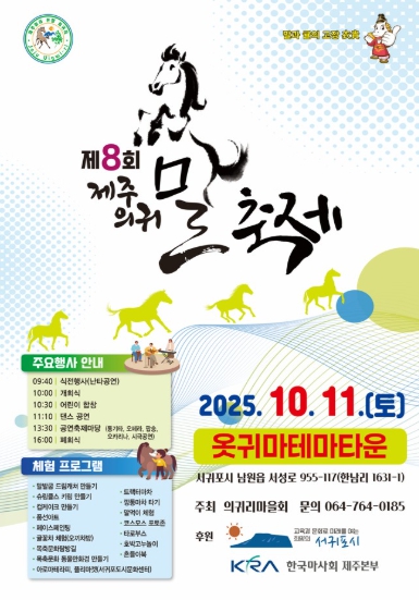 [무한뉴스=정민정 기자] 서귀포시는 ‘헌마공신 김만일’을 기리고, 제주 전통마와 지역 목축문화를 널리 알리기 위한 제8회 의귀말 축제가 오는 11일 옷귀마테마타운 일원에서 개최된다고 밝혔다.