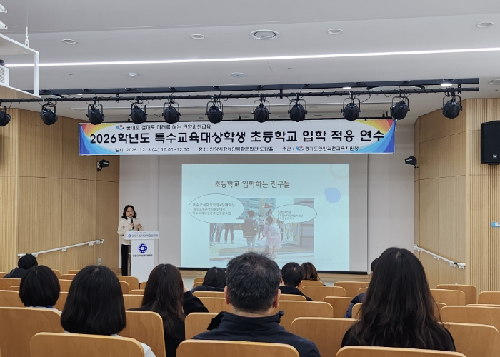 [무한뉴스=정승훈 기자] 경기도안양과천교육지원청이 관내 특수교육대상학생의 초등학교 입학 초기 적응을 돕기 위해 오는 12월 3일 안양시장애인복합문화관에서‘특수교육대상학생 초등학교 입학 적응 학부모(보호자) 연수’를 진행했다.