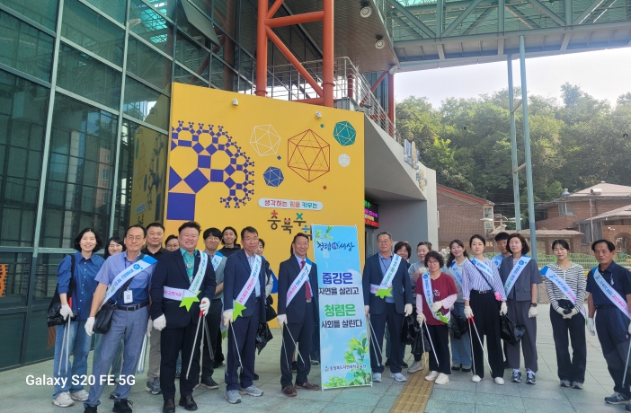 [무한뉴스=정승훈 기자] 충청북도교육청 직속기관 자연과학교육원(원장 지성훈)은 1일, 당산공원에서 10월 직원 소통의 날 행사로 '청렴캠페인 겸 줍킹(Plogging) 환경정화 활동'을 전개한 뒤 오후에는 육거리전통시장을 찾아 명절맞이 장보기 행사에 전 직원이 동참했다.