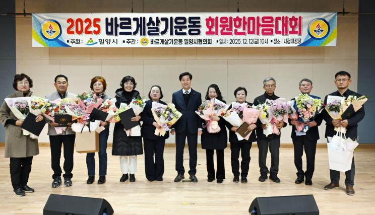 [무한뉴스=최진수 기자] 바르게살기운동 밀양시협의회가 주관한 ‘2025년 바르게살기운동 밀양시협의회 회원 한마음대회’가 12일 시청 대강당에서 성황리에 개최됐다.