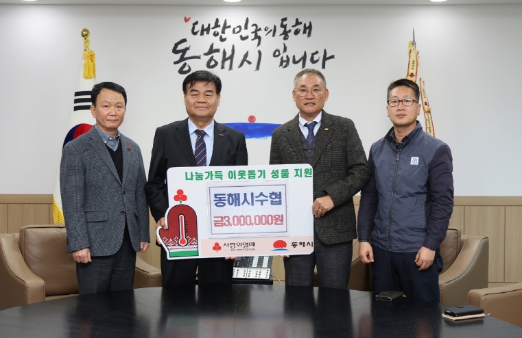 [무한뉴스=정민정 기자] 동해시수산업협동조합(조합장 김동진)은 지난 11월 김장김치 기탁에 이어 다시한번 지역사회 나눔에 희망2026나눔캠페인에 동참하며 이웃돕기 성금 300만원을 동해시에 기탁했다.