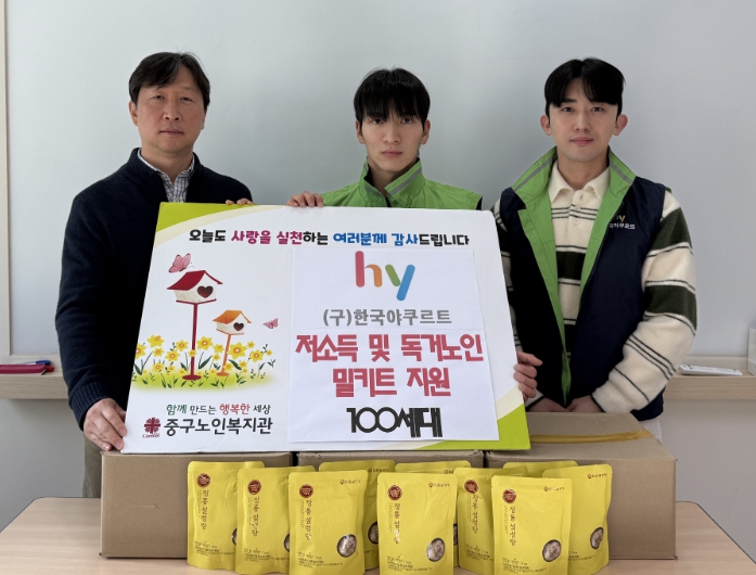 [무한뉴스=최진수 기자] ㈜hy(대표이사 변경구)는 지난 18일 중구노인복지관에 독거 및 저소득 어르신 100세대를 위한 설렁탕 밀키트를 후원했다.