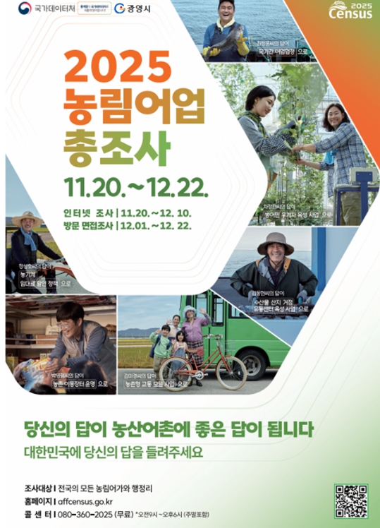 [무한뉴스=정민정 기자] 광양시는 11월 20일부터 12월 22일까지 ‘2025 농림어업총조사’를 실시한다고 밝혔다.
