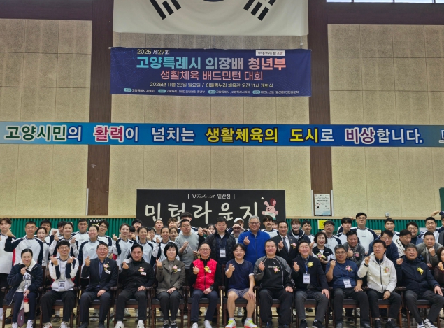 [무한뉴스=양현명 기자] 제27회 고양특례시의회 의장배 청년부 배드민턴대회가 11월 23일 고양어울림누리 체육관에서 성황리에 마무리됐다. 이번 대회는 고양특례시 체육회가 주최하고 고양특례시 배드민턴협회가 주관한 가운데, 지역 청년부 배드민턴 동호인과 시민들이 한자리에 모여 스포츠를 통한 소통과 건강 증진의 기회를 나누는 자리로 치러졌다.