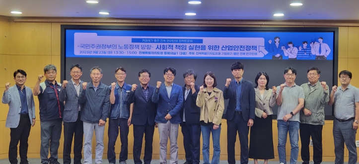 [무한뉴스=양현명 기자] 전북특별자치도의회 의원 연구단체 ‘기업하기 좋은 전북’(대표위원 서난이)은 23일 전북자치도청 중회의실에서 ‘사회적 책임 실현을 위한 산업안전정책 모색’이라는 주제로 정책토론회를 개최했다. 이번 토론회는 이재명 국민주권정부의 안전한 일터 만들기에 발맞추어, 전북자치도의 대응 방향을 모색하기 위해 마련됐다.