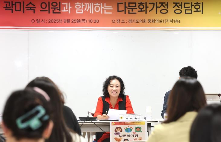 [무한뉴스=양현명 기자] 경기도의회 곽미숙 의원(국민의힘, 고양6)은 지난 25일 오전 경기도의회 중회의실에서 열린 다문화가정 정담회에서 “현장에서 제기된 어려움을 분명히 인지했고, 그 취지에 깊이 공감한다”며 “당장의 확답보다는 사실관계를 세밀히 점검하고, 집행부와 제도적 개선 가능성을 차분히 논의하겠다”고 밝혔다.