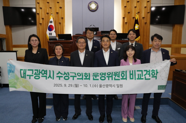 [무한뉴스=양현명 기자] 울산 남구의회는 29일 의장실에서 대구 수성구의회 의회운영위원회와 상호 발전 방향을 모색하기 위한 교류 간담회를 개최했다.