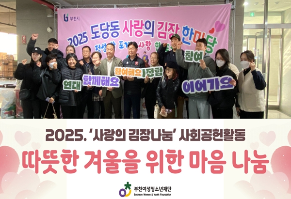 [무한뉴스=정승훈 기자] 부천여성청소년재단은 11월 20일 도당어울마당에서 열린 ‘2025. 도당동 사랑의 김장 한마당’에 참여해 지역사회 함께하는 따뜻한 나눔 활동을 펼쳤다.
