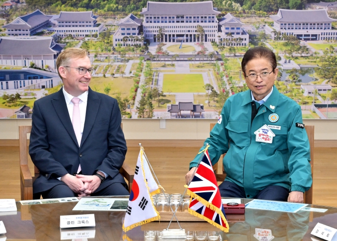 [무한뉴스=최진수 기자] 이철우 경상북도지사는 3일 도청을 방문한 콜린 크룩스(Colin Crooks) 주한 영국대사 내외와 만나, 경주 APEC 정상회의의 성공적 개최 협력 방안과 함께 산업·문화·교육 등 다양한 분야의 교류 확대를 논의했다.