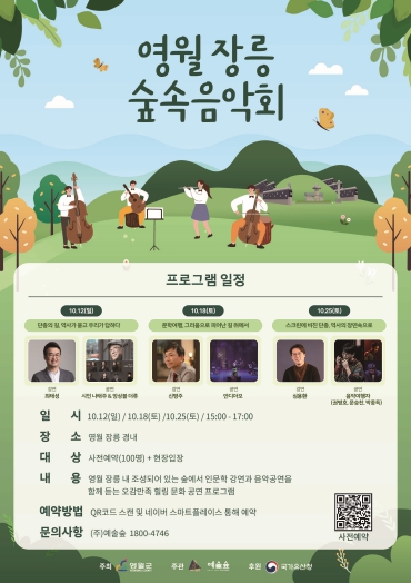 [무한뉴스=정민정 기자] 영월군은 오는 10월 12일, 18일, 25일 오후 3시부터 5시까지 세계유산 장릉 경내에서 ‘영월 장릉 숲속 음악회’를 개최한다.