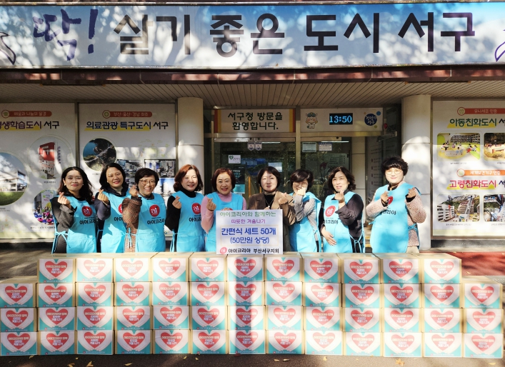 아이코리아 부산서구지회(회장 강문금)는 관내 어린이집 원장과 보육교직원으로 구성된 단체로, 평소 지역 내 나눔 활동을 이어오고 있다. 이번 전달식에서는 추운 겨울을 맞아 한부모가정을 지원하기 위해 직접 만든 간편식 50세트를 기부하며 따뜻한 나눔을 실천했다.