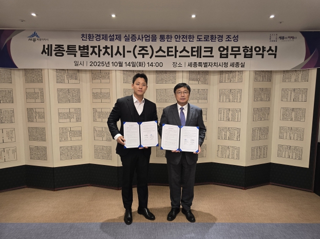 [무한뉴스=정민정 기자] 세종특별자치시가 14일 시청 세종실에서 ㈜스타스테크(대표 양승찬)와 업무협약을 체결해 3년간 총 1200t의 친환경 제설제를 지원받는다.