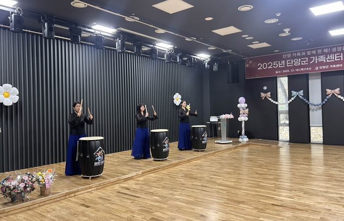 [무한뉴스=정민정 기자] 단양군가족센터는 지난 18일, 센터 연간 성과보고회에서 결혼이주여성 자조활동 프로그램 '소리의 만남' 참여자들이 준비한 식전무대 난타공연을 성공적으로 진행했다.