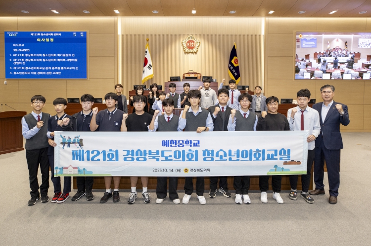 [무한뉴스=양현명 기자] 경상북도의회는 10월 14일 본회의장에서 예천중학교 학생 17명이 참여한 가운데 '제121회 경상북도의회 청소년의회교실'을개최했다.