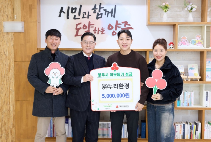[무한뉴스=정승훈 기자] 양주시가 지난 12일 ㈜누리환경(대표 이재민)으로부터 이웃돕기 성금 500만 원을 기탁받았다.