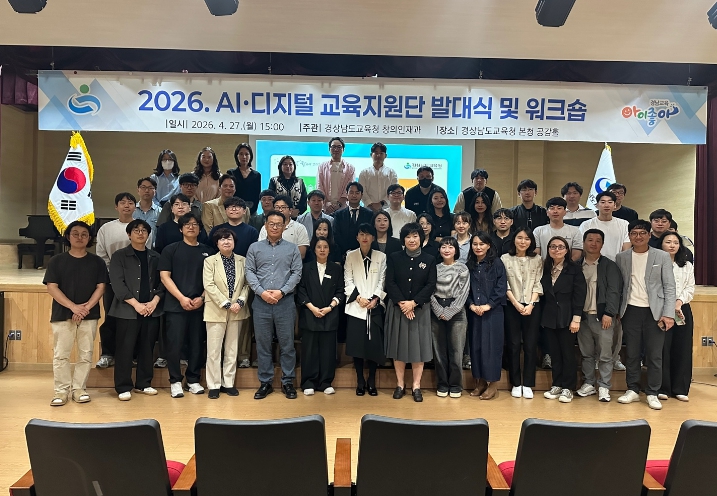 [무한뉴스=정승훈 기자] 경상남도교육청은 27일, 경남교육청 공감홀에서 ‘2026년 인공지능·디지털 교육지원단 발대식 및 워크숍’을 개최하고, 경남형 인공지능(AI)·디지털 교육의 현장 안착에 본격적으로 나선다.
