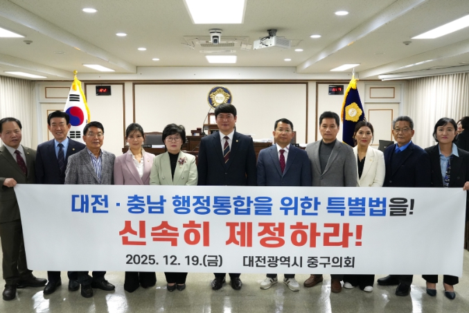 대전광역시 중구의회는 김석환 의원의 대표발의를 시작으로, 대전·충남 시민과 함께 특별법 통과를 위한 요구와 행동을 지속해 나갈 계획이다.