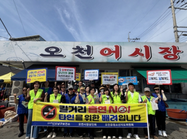 [무한뉴스=최진수 기자] 포항시 남구보건소는 30일 오천시장 일원에서 오천시장 상인회, 오천읍 청소년지도위원회와 함께 민·관 합동 금연 캠페인을 진행했다.