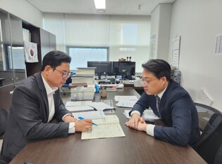 | ▲ 지난 9월 김학용 의원, 이용욱 국토부 도로국장과 안성~화성 민자고속도로 관련 협의 |