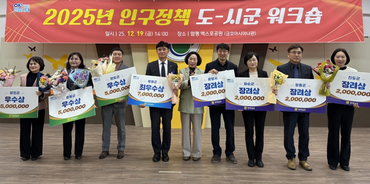 워크숍은 전남도와 22개 시군 인구정책 담당 부서장, 관계 공무원 등 60여 명이 참석한 가운데 인구정책 우수사례와 추진성과를 공유하고, 인구정책 우수 시군에 대한 시상과 전남도 인구정책 발전방향을 함께 논의하는 시간으로 진행됐다.