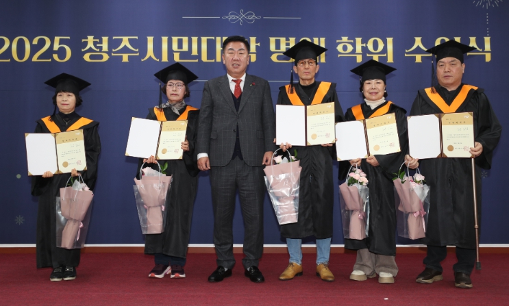 이범석 청주시장은 “배움에 대한 뜨거운 열정으로 값진 결실을 맺은 명예학위 수여자 여러분께 진심으로 축하를 전한다”며 “앞으로도 시민 누구나 원하는 때에 평생학습에 참여할 수 있도록 더욱 다양하고 알찬 평생교육 기회를 마련하겠다”고 말했다.