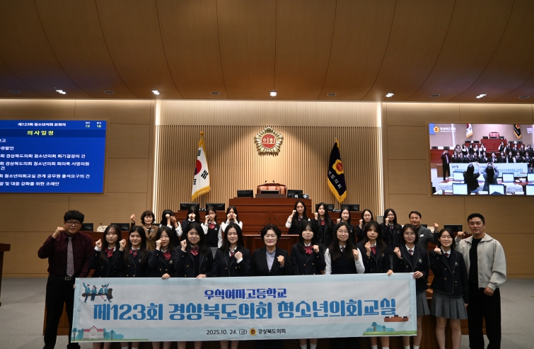 [무한뉴스=최진수 기자] 경상북도의회는 10월24일 본회의장에서 상주 우석여자고등학교 학생 19명이 참여한 가운데『제123회 경상북도의회 청소년의회교실』을 개최했다.