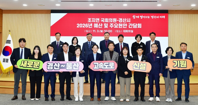 [무한뉴스=최진수 기자] 경산시는 3일 시청 대회의실에서 조지연 국회의원과 간담회를 개최하고, 2026년 정부 예산 확보 및 주요 시정 현안 사업에 대한 긴밀한 협력 방안을 논의했다.