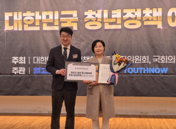 [무한뉴스=정민정 기자] 화순군은 23일 국회도서관 대강당에서 열린 ‘2025 대한민국 청년정책 어워즈’에서 청년 및 신혼부부 만원임대주택 정책으로 ‘혁신상’을 수상했다고 밝혔다.