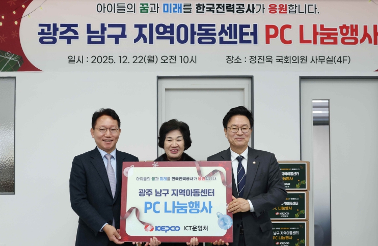 [무한뉴스=정민정 기자] 한국전력이 12월 22일 광주 남구 지역아동센터를 대상으로 ‘PC 나눔행사’를 개최했다. 이번 행사는 지역아동센터의 디지털 교육 환경을 개선하고 자원의 효율적 활용을 통한 나눔 문화를 확산하기 위해 마련됐다.