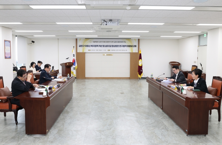 이번 연구는 지난 4월 착수보고회를 시작으로 약 7개월간 진행됐으며, 금천구 어르신의 존엄하고 행복한 노후 실현을 목표로 복지정책을 개선하고, 삶의 질을 높이기 위한 방안을 모색했다. 특히 연구단은 설문조사와 심층 인터뷰(FGI) 등을 통해 금천구 어르신들의 실제 복지 욕구를 파악하고, 현행 복지정책의 문제점을 분석하여 지역 실정에 맞는 현실적이고 실행 가능한 대안을 제시했다.