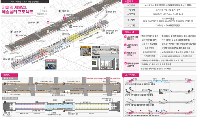 중구 광복·부평동 ‘지하의 재발견, 예술쉼터 프로젝트’는 국제지하도상가 내 부족한 화장실과 휴식 공간을 확충하고 공연·전시 등 문화 행사를 도입해 지역 활성화를 도모하는 사업이다.