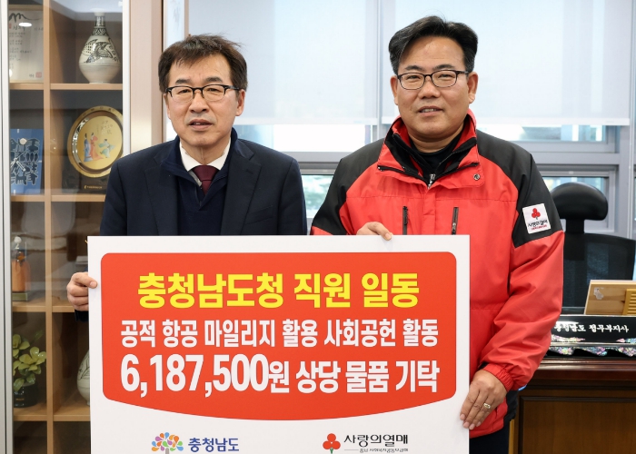 이번 행사에는 도청과 충남소방본부, 소방서 등 26개 부서가 참여했으며, 공적 항공마일리지를 활용해 618만 7500원 상당 42종 156개 기부 물품을 마련했다.