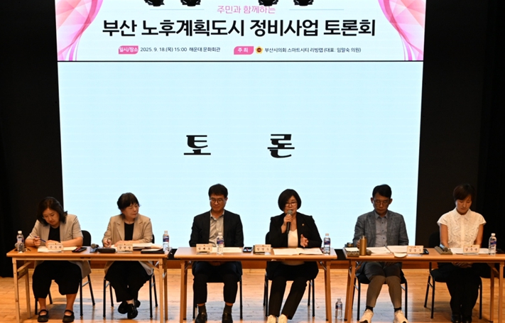이날 토론회에는 임말숙 대표의원을 비롯해 부산시 도시공간활력과 강현영 과장, 주제 발표를 맡은 동의대학교 부동산대학원 정쾌호 원장, 해운대구의회 김상수 의원 등 관계자와 시민 100여 명이 참석한 가운데 진행됐다.
