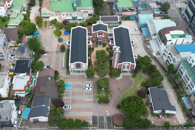 이들 본당·사제관·강당은 전면이 개방된 중정을 중심으로 ㄷ자형으로 배치되어 신앙·거주·교육·공동체 기능을 하나의 공간 체계 안에서 통합적으로 구현하고 있으며, 기존 메리놀외방전교회 계통 성당과 차별화되는 공간 구성으로 평가된다.