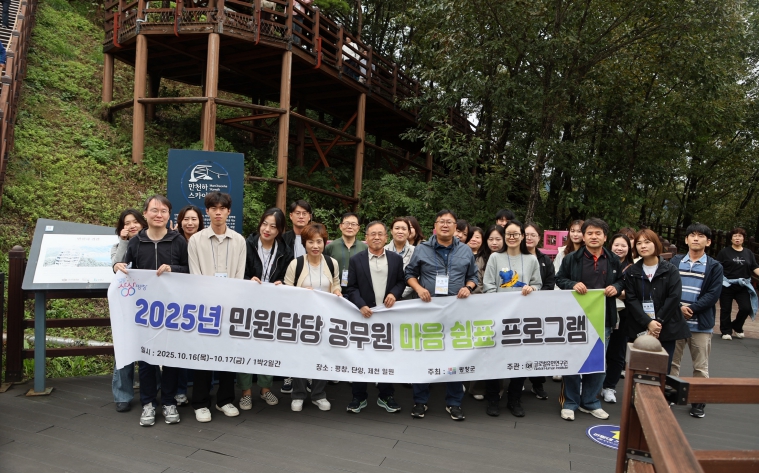 [무한뉴스=정민정 기자] 평창군은 민원 담당 직원 30여 명을 대상으로 충북 단양군 및 제천시 일원에서 16일과 17일 이틀에 걸쳐 2025년 민원 담당 공무원 마음 쉼표 프로그램을 운영한다.