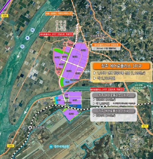 청주 에어로폴리스 3지구는 청주시 청원구 북이면 내둔ㆍ화상ㆍ화하리 일원에 1,129천㎡(약 34만 평) 규모로 조성되는 항공산업 특화단지로, 2017년부터 사업이 추진돼 왔다.