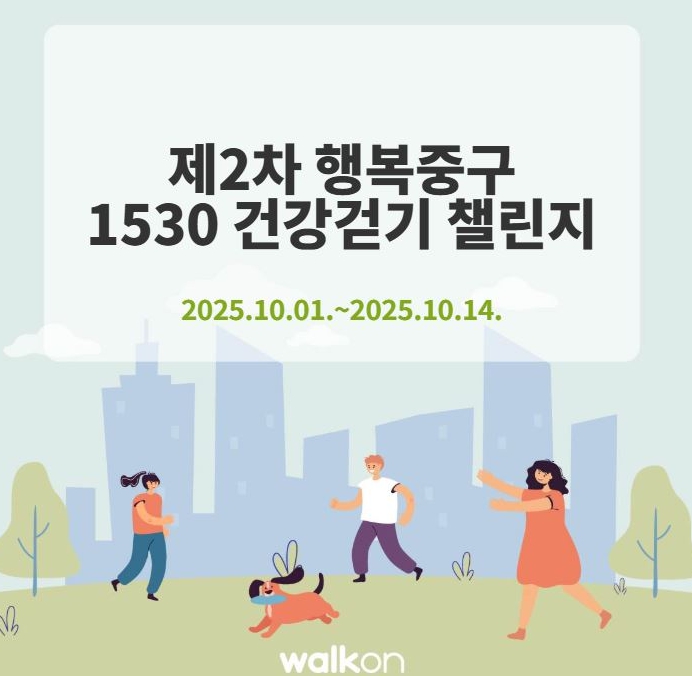 [무한뉴스=최진수 기자] 부산 중구는 관내 중구민과 직장인을 대상으로 10월 1일부터 10월 14일까지 걷기 앱 워크온을 활용한‘제2차 행복 중구, 1530 건강걷기 챌린지’를 운영한다