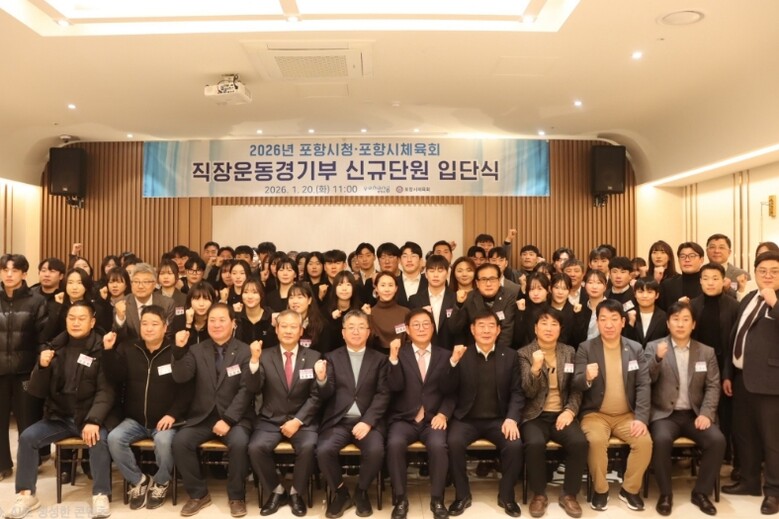 이번 입단식은 포항시 홍보영상 상영을 시작으로 2026년 직장운동경기부 운영 계획 발표, 신규 선수 임용장 수여, 선수 선서, 구호 제창 및 기념 촬영 순으로 진행됐으며 새롭게 출발하는 선수단의 각오와 결의를 다지는 자리로 마련됐다.